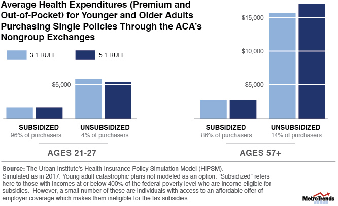- Roughly 96 percent of the 21- to 27-year-olds who purchase single nongroup coverage from an exchange would get subsidies that keep their costs on par with a 5:1 rule.