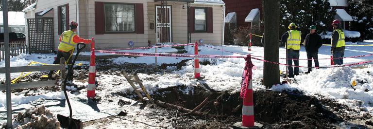 <p>City of Flint, Michigan, workers prepare to replace a lead water service line pipe at the site of the first Flint home with high lead levels to have its lead service line replaced under the mayor's Fast Start program on March 4, 2016 in Flint, Michigan. The program aims to replace all the lead water pipes in the city and will target homes in neighborhoods with the highest number of children under 6 years old, senior citizens, pregnant women, and other high-risk homes first. (Photo by Bill Pugliano / Getty Images)</p>