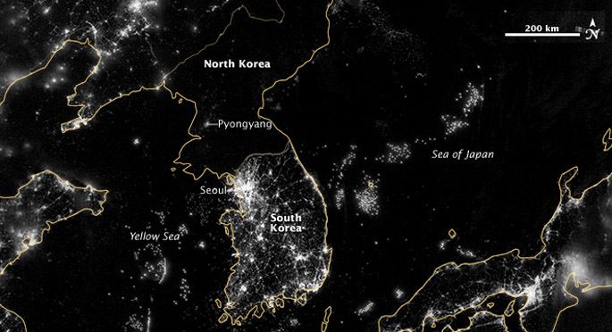 Proving the adage that a picture is worth a thousand words, the famous nighttime satellite image of the Korean peninsula tells the same story.