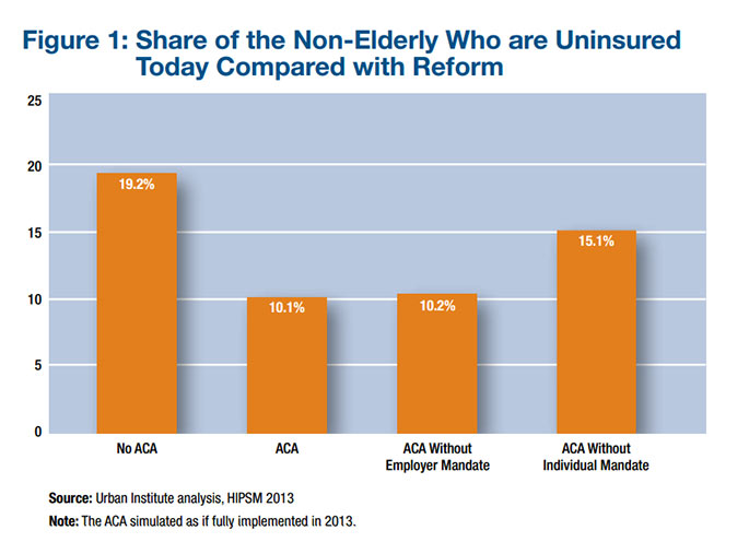 Our analysis shows that the principal objectives of the ACA’s coverage expansion can be met without the employer mandate, and implementation of the law should be made considerably easier without it. The individual mandate, in contrast, is a critical component of the coverage expansion in the ACA.