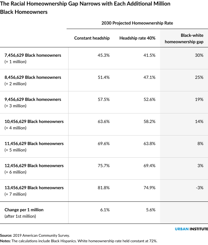 How incrementally increasing the number of Black homeowners affects homeownership rates