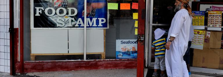 <p>A man walks into a store advertising that they accept SNAP benefits on April 14, 2013 in Belle Glade, Fl. Photo by Michael S. Williamson/The Washington Post via Getty Images.</p>