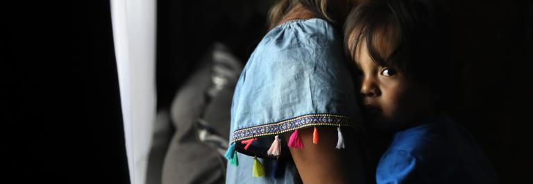 <p>Ingrid Encalada, an undocumented immigrant from Peru and mother of two, holds her son Anibal Jurado, 17 months, at their home in Thornton, Colorado. Photo by John Moore/Getty Images.</p>