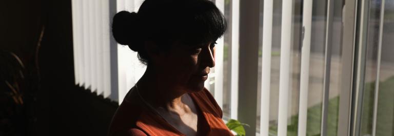 <p>Undocumented Mexican immigrant Adela Banuelos, 52, whos five children were born in the U.S., looks out from her home on June 7, 2017 in Denver, Colorado. She has lived in the United States for 32 years, having come from Zacatecas, Mexico in 1984. Photo by John Moore/Getty Images.</p>