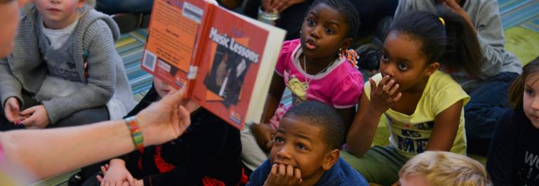 <p>Librarian Sue Bloom reads stories to kindergarten students before the children break into learning center groups at Peabody Elementary School on Wednesday, February 25, 2015, in Washington, DC. Photo by Jahi Chikwendiu/The Washington Post via Getty Images</p>