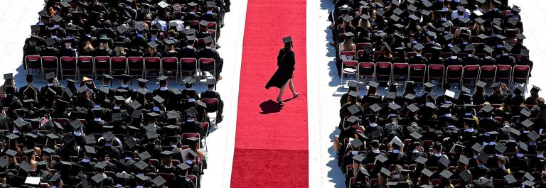 <p>A graduate crosses the red carpet during the Boston College commencement at Alumni Stadium in Boston, Massachusetts, on May 21, 2018. (Photo by David L. Ryan/The Boston Globe via Getty Images)</p>