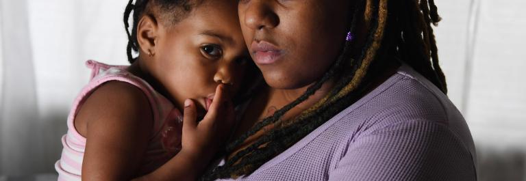 <p>Kyera Johnson poses for a portrait with her daughter, Zara Smallwood, 2, at their apartment on Sunday December 11, 2016 in Washington, DC. Kyera's boyfriend and Zara's father, William Smallwood is in prison. Photo by Matt McClain/The Washington Post via Getty Images.</p>