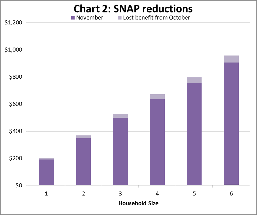Note: The entire bar is the October benefit for a family. The lighter section of the bar is how much benefit is lost due to the ARRA expiration, and the darker section is what remains for a family in November.
