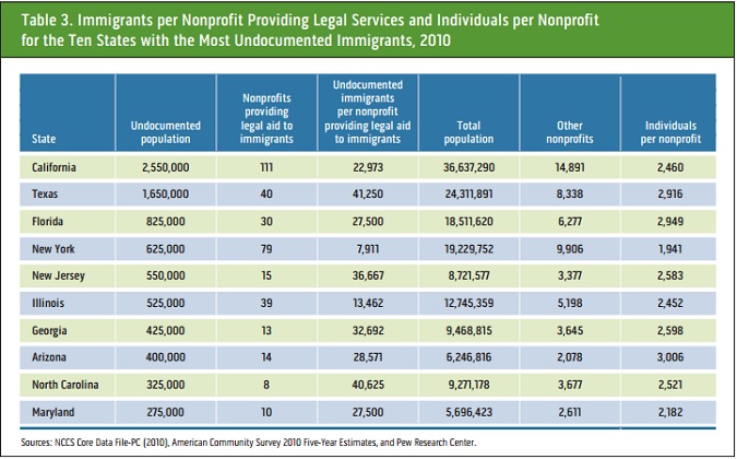 This very high ratio of undocumented immigrants to potential sources of nonprofit legal aid should be a cause for concern. Adding thousands of new cases to existing caseloads without substantial infusion of resources—funding and staffing and volunteers—is not a realistic scenario.