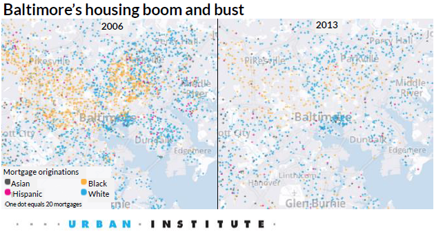 Mortgage finance may not be at the forefront of policy conversations about the recent Baltimore protests, but a closer look the city’s housing data shows that it is one of many problems at play. A stagnant and uneven housing recovery—especially in communities of color—has contributed to growing inequality in cities across the country, but there are local and national solutions to address the problem.