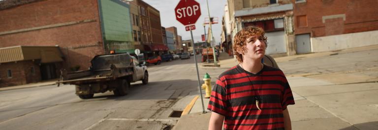 <p>Tyrel Davidson, 18, walks down E. Main Street after applying for food stamps on Monday February 01, 2016 in Ottumwa, IA. Photo by Matt McClain/The Washington Post via Getty Images.</p>