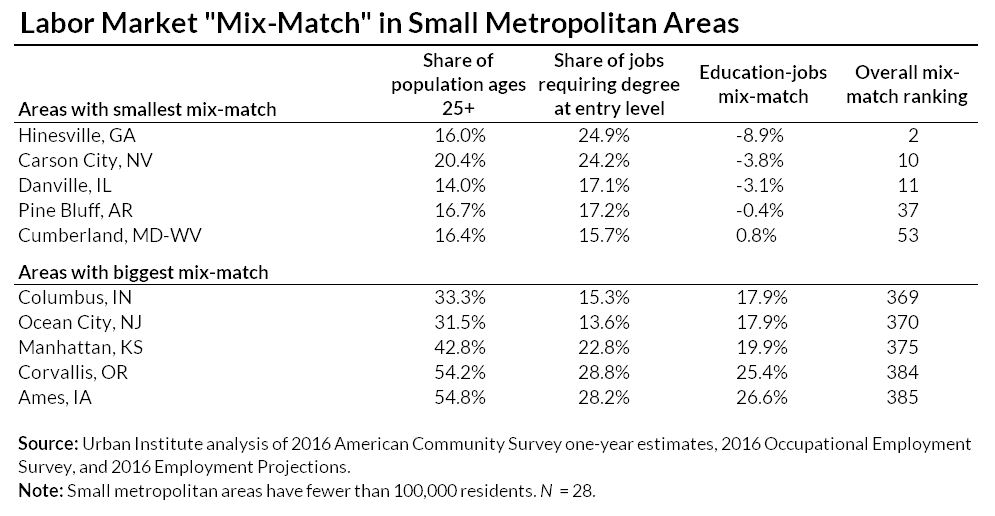 We find that mix-matches between jobs requiring a college education and people who have that education are common. This challenge has far-reaching consequences for the labor market and requires local leaders to consider hiring and economic development strategies to improve the mix-match in their communities.
